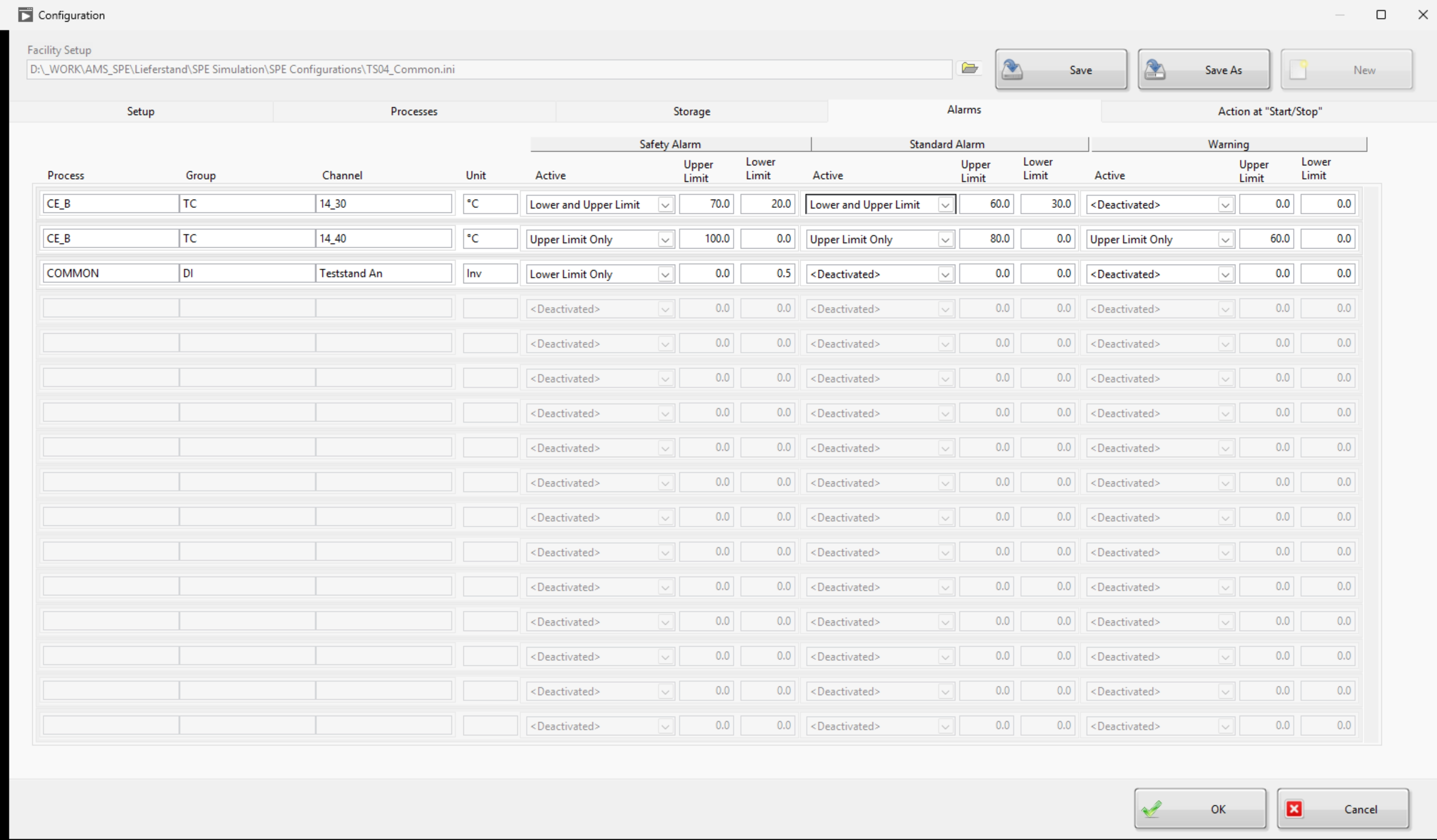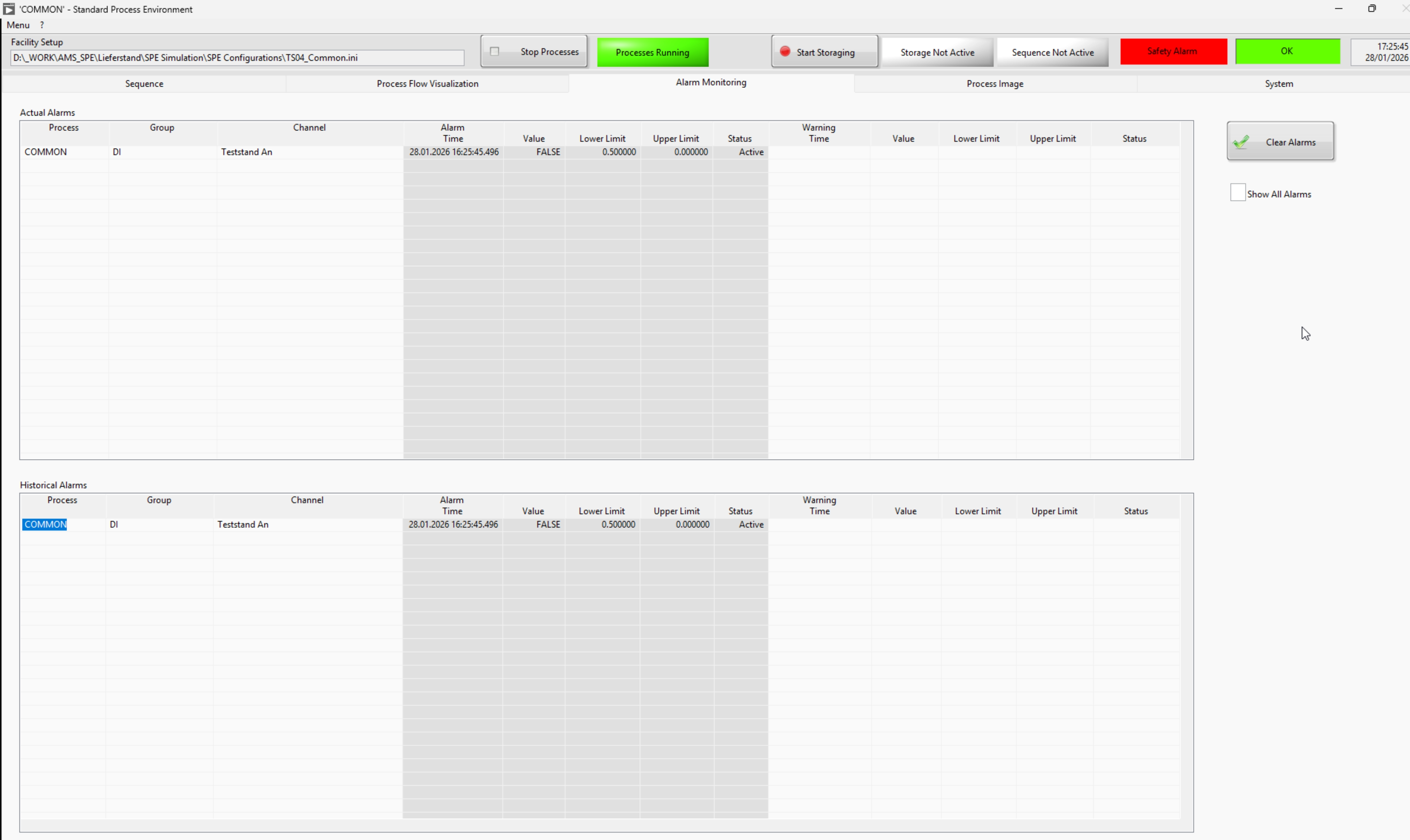 Konfiguration von anlagenspezifischen Alarmen, die entweder die Sequenz oder einzelne Prozesse beenden können.
